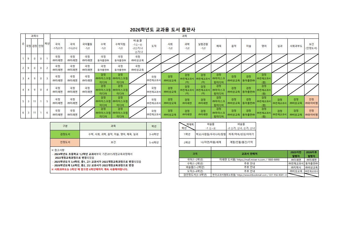 2026학년도 검인정 교과용도서 출판사 및 판매처 안내