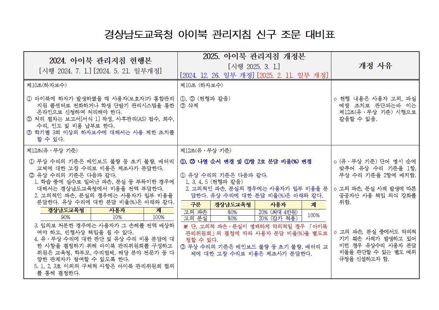 아이북 고의 파손 · 분실 건 발생 대응 및 공공자산에 대한 사용자 책임 의식 강화를 위해 「2025. 경상남도교육청 아이북 관리지침」이 일부 개정 되었음을 알려드립니다.