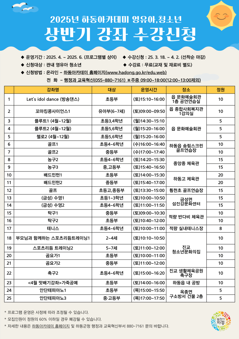 2025. 하동아카데미 상반기 강좌 수강신청 안내