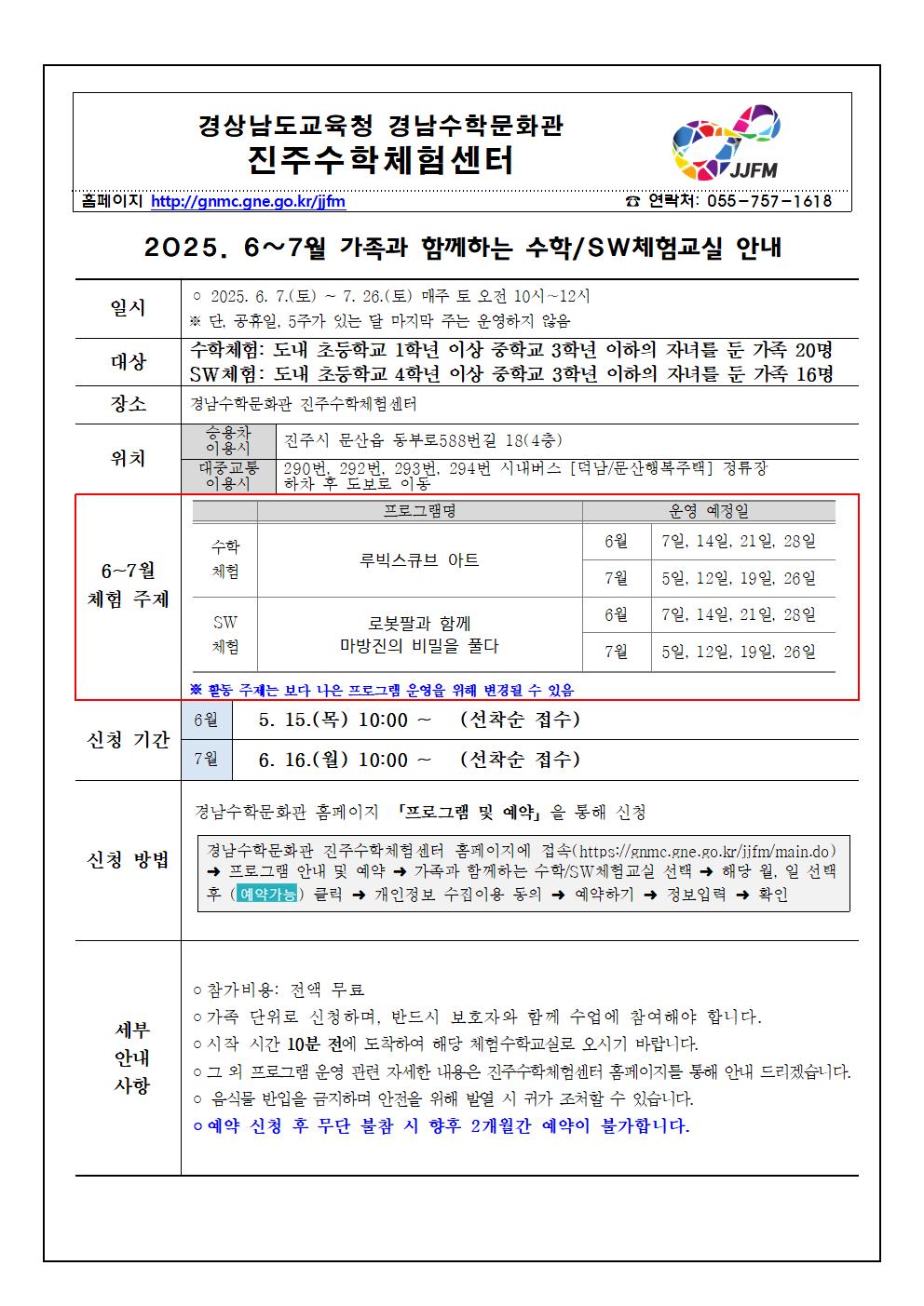 [붙임1] 2025. 진주수학체험센터 6~7월 가족과 함께하는 수학·SW체험 안내.hwp