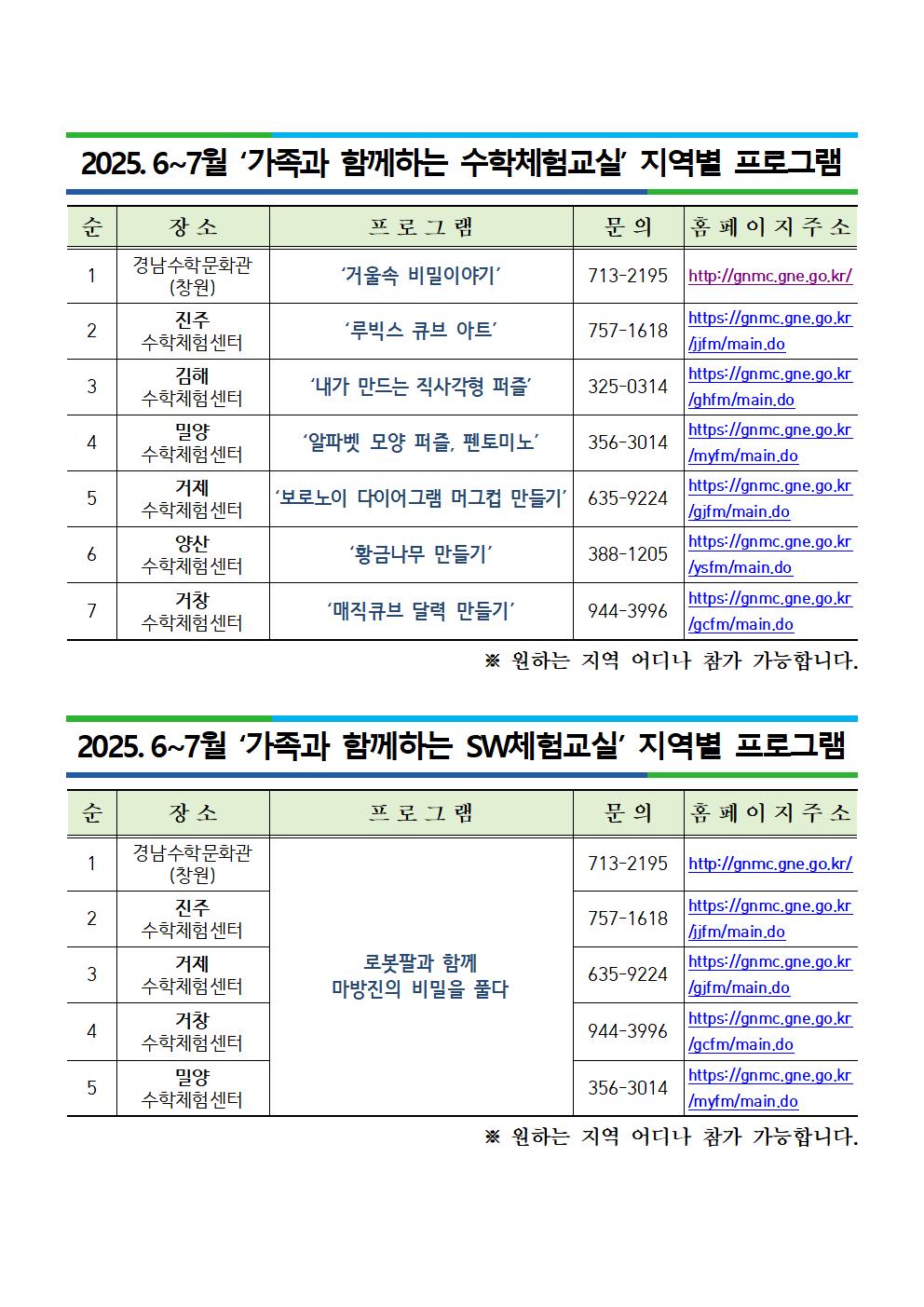 [붙임2] 2025. 6~7월 가족과 함께하는 수학·SW체험교실 지역별 프로그램 안내.hwpx