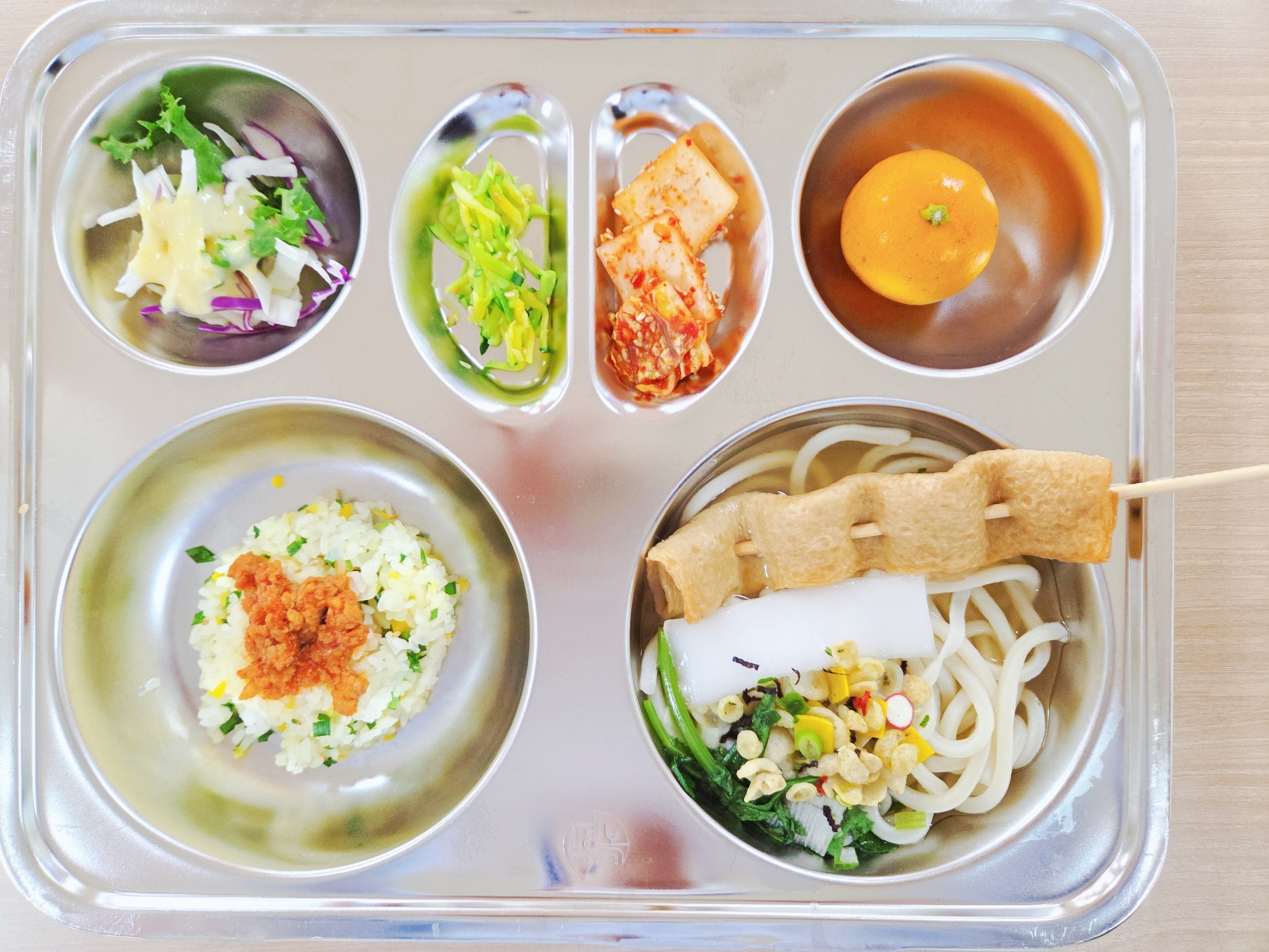 고기올린버터밥(S)(2.5.6.10.13)물떡꼬지어묵우동(1.2.5.6.7.9.18)애호박채무침(5.6.18)(자율)배추김치(9)김치담기(9)밀감양배추샐러드(1.2.5.6.13)우유(2)* 에너지/단백질/칼슘/철663.48/26.06/318.49/2.19